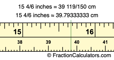 15 4/6 inches ≈ 39.79333333 cm