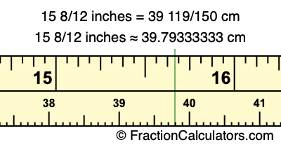 One inch is equal to 127/50 centimeters. Therefore, to get the fractional answer to 15 8/12 inches to cm, we multiply 15 8/12 inches by 127/50 and simplify if necessary.