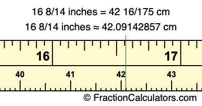 Centimeters is usually given in decimal form, so we have also converted the fractional answer to 16 8/14 inches to cm, to decimal form: