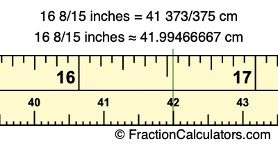 Centimeters is usually given in decimal form, so we have also converted the fractional answer to 16 8/15 inches to cm, to decimal form: