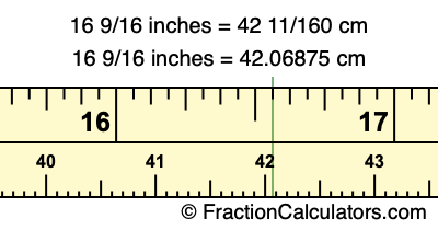 Centimeters is usually given in decimal form, so we have also converted the fractional answer to 16 9/16 inches to cm, to decimal form: