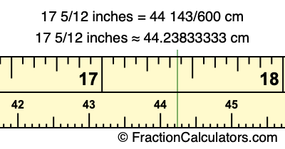 Centimeters is usually given in decimal form, so we have also converted the fractional answer to 17 5/12 inches to cm, to decimal form: