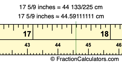 Centimeters is usually given in decimal form, so we have also converted the fractional answer to 17 5/9 inches to cm, to decimal form: