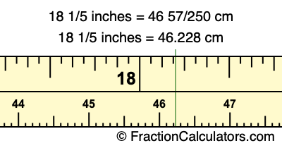 Centimeters is usually given in decimal form, so we have also converted the fractional answer to 18 1/5 inches to cm, to decimal form: