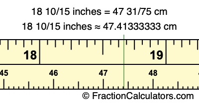 Centimeters is usually given in decimal form, so we have also converted the fractional answer to 18 10/15 inches to cm, to decimal form: