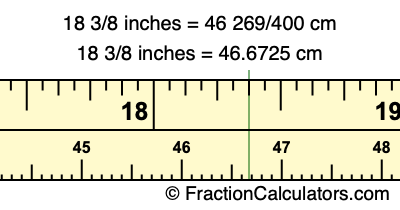 Centimeters is usually given in decimal form, so we have also converted the fractional answer to 18 3/8 inches to cm, to decimal form: