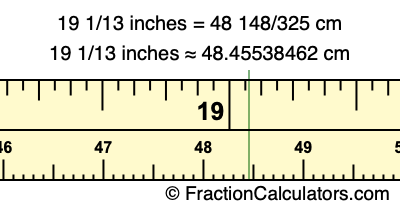 Here is how to convert 19 1/13 inches to cm. We will give you the fractional answer, the decimal answer, and illustrate the answer on our tape measure.