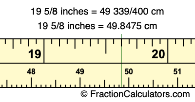 Centimeters is usually given in decimal form, so we have also converted the fractional answer to 19 5/8 inches to cm, to decimal form: