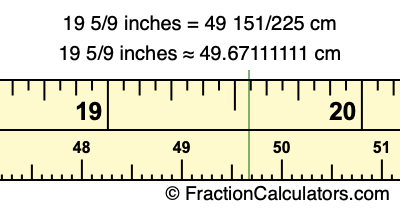 Centimeters is usually given in decimal form, so we have also converted the fractional answer to 19 5/9 inches to cm, to decimal form: