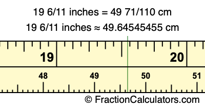 Centimeters is usually given in decimal form, so we have also converted the fractional answer to 19 6/11 inches to cm, to decimal form: