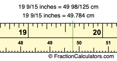 Centimeters is usually given in decimal form, so we have also converted the fractional answer to 19 9/15 inches to cm, to decimal form: