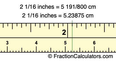 2 1/16 inches = 5 191/800 cm