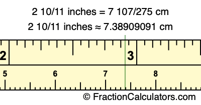 2 10/11 inches ≈ 7.38909091 cm