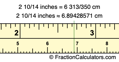 Centimeters is usually given in decimal form, so we have also converted the fractional answer to 2 10/14 inches to cm, to decimal form: