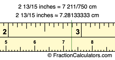 Centimeters is usually given in decimal form, so we have also converted the fractional answer to 2 13/15 inches to cm, to decimal form: