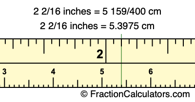 Centimeters is usually given in decimal form, so we have also converted the fractional answer to 2 2/16 inches to cm, to decimal form: