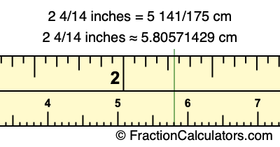 Centimeters is usually given in decimal form, so we have also converted the fractional answer to 2 4/14 inches to cm, to decimal form: