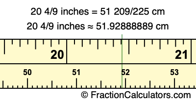 Centimeters is usually given in decimal form, so we have also converted the fractional answer to 20 4/9 inches to cm, to decimal form: