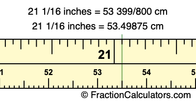 Centimeters is usually given in decimal form, so we have also converted the fractional answer to 21 1/16 inches to cm, to decimal form: