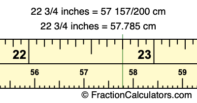 Centimeters is usually given in decimal form, so we have also converted the fractional answer to 22 3/4 inches to cm, to decimal form: