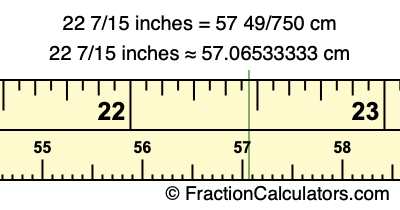22 7/15 inches ≈ 57.06533333 cm
