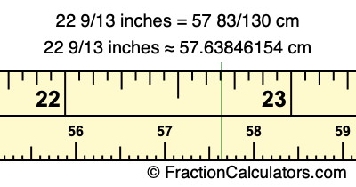 Centimeters is usually given in decimal form, so we have also converted the fractional answer to 22 9/13 inches to cm, to decimal form: