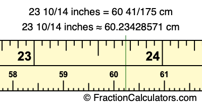 Centimeters is usually given in decimal form, so we have also converted the fractional answer to 23 10/14 inches to cm, to decimal form: