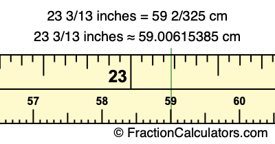 Centimeters is usually given in decimal form, so we have also converted the fractional answer to 23 3/13 inches to cm, to decimal form: