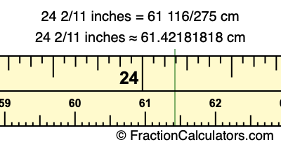 Centimeters is usually given in decimal form, so we have also converted the fractional answer to 24 2/11 inches to cm, to decimal form: