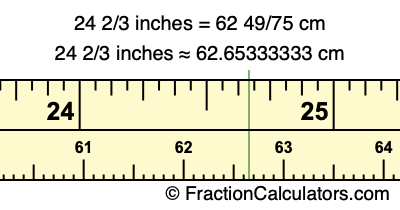 Centimeters is usually given in decimal form, so we have also converted the fractional answer to 24 2/3 inches to cm, to decimal form: