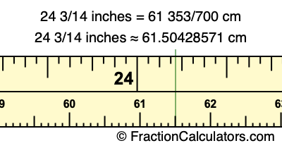 Centimeters is usually given in decimal form, so we have also converted the fractional answer to 24 3/14 inches to cm, to decimal form: