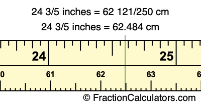 Centimeters is usually given in decimal form, so we have also converted the fractional answer to 24 3/5 inches to cm, to decimal form: