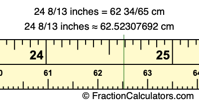 Centimeters is usually given in decimal form, so we have also converted the fractional answer to 24 8/13 inches to cm, to decimal form: