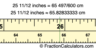 25 11/12 inches ≈ 65.82833333 cm