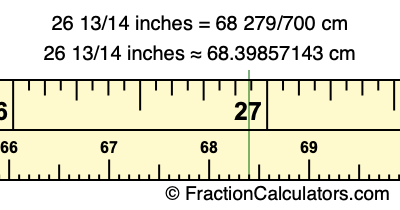 Centimeters is usually given in decimal form, so we have also converted the fractional answer to 26 13/14 inches to cm, to decimal form: