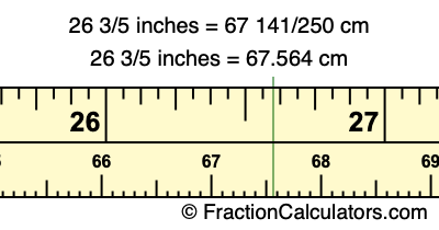 Centimeters is usually given in decimal form, so we have also converted the fractional answer to 26 3/5 inches to cm, to decimal form: