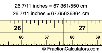 Centimeters is usually given in decimal form, so we have also converted the fractional answer to 26 7/11 inches to cm, to decimal form:
