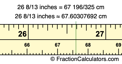 Centimeters is usually given in decimal form, so we have also converted the fractional answer to 26 8/13 inches to cm, to decimal form: