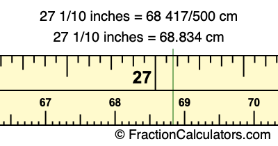 Centimeters is usually given in decimal form, so we have also converted the fractional answer to 27 1/10 inches to cm, to decimal form: