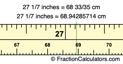 Centimeters is usually given in decimal form, so we have also converted the fractional answer to 27 1/7 inches to cm, to decimal form: