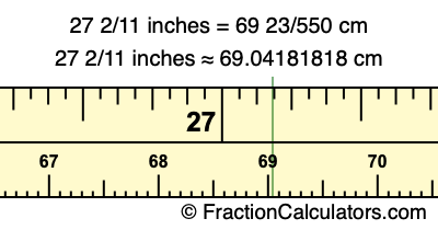 27 2/11 inches = 69 23/550 cm