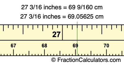 Centimeters is usually given in decimal form, so we have also converted the fractional answer to 27 3/16 inches to cm, to decimal form: