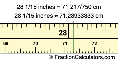 28 1/15 inches ≈ 71.28933333 cm