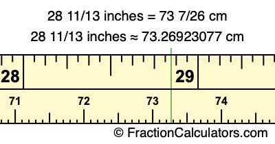 Centimeters is usually given in decimal form, so we have also converted the fractional answer to 28 11/13 inches to cm, to decimal form: