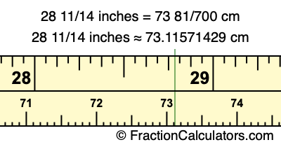 Centimeters is usually given in decimal form, so we have also converted the fractional answer to 28 11/14 inches to cm, to decimal form: