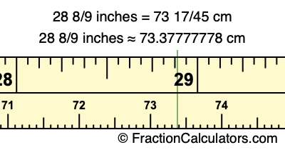 28 8/9 inches ≈ 73.37777778 cm