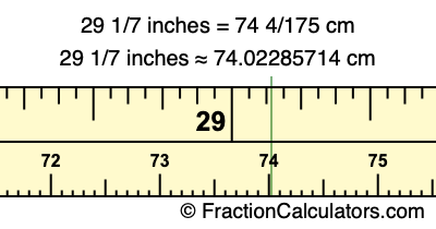 Centimeters is usually given in decimal form, so we have also converted the fractional answer to 29 1/7 inches to cm, to decimal form: