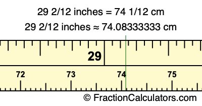 One inch is equal to 127/50 centimeters. Therefore, to get the fractional answer to 29 2/12 inches to cm, we multiply 29 2/12 inches by 127/50 and simplify if necessary.