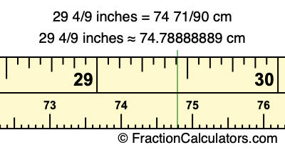 Centimeters is usually given in decimal form, so we have also converted the fractional answer to 29 4/9 inches to cm, to decimal form: