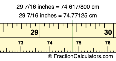 Centimeters is usually given in decimal form, so we have also converted the fractional answer to 29 7/16 inches to cm, to decimal form: